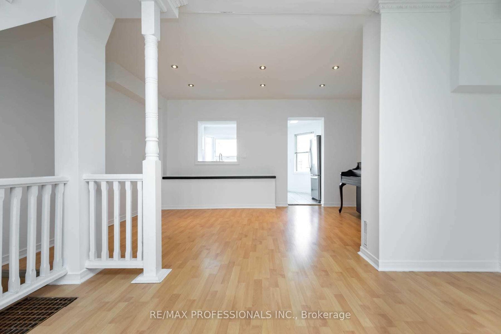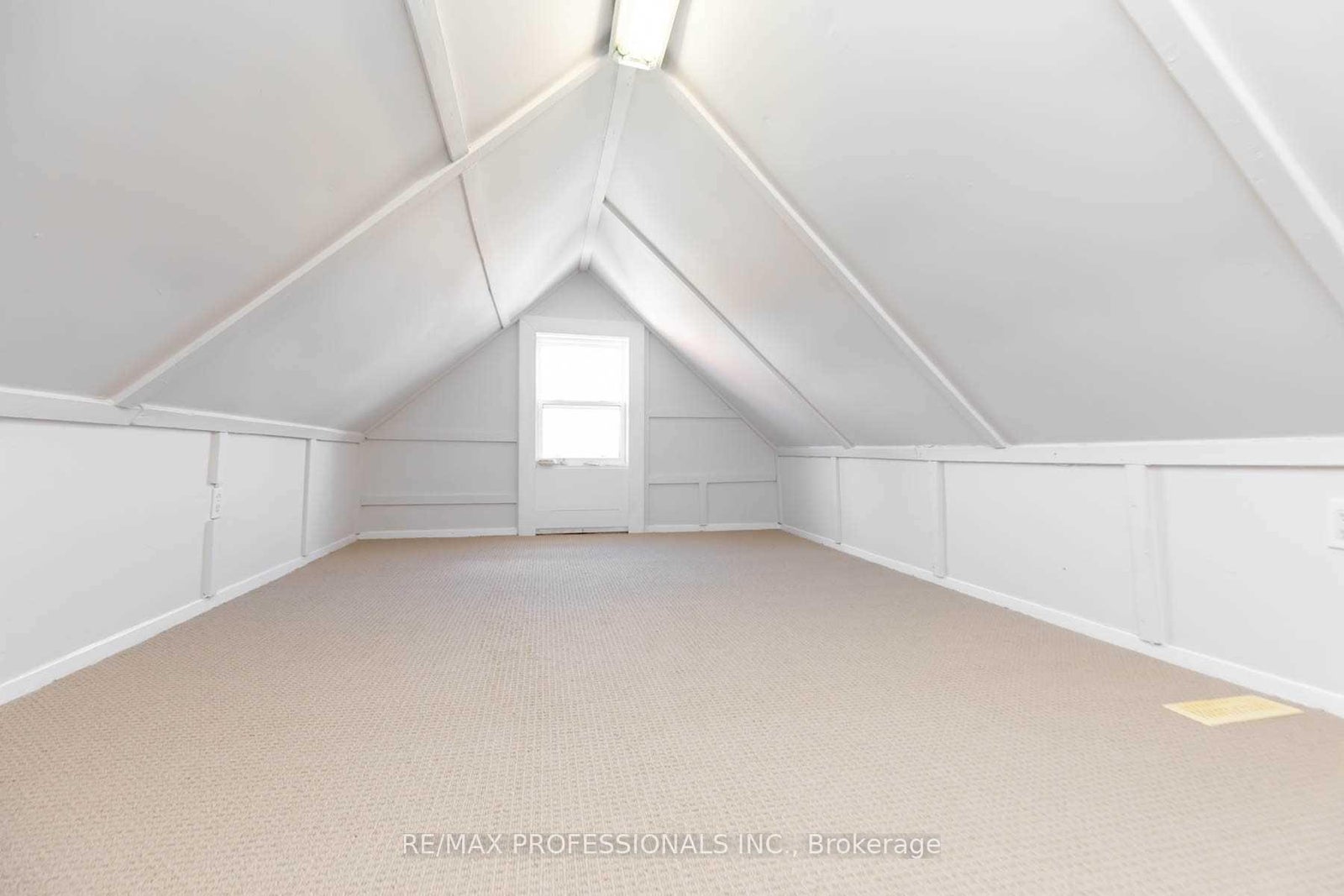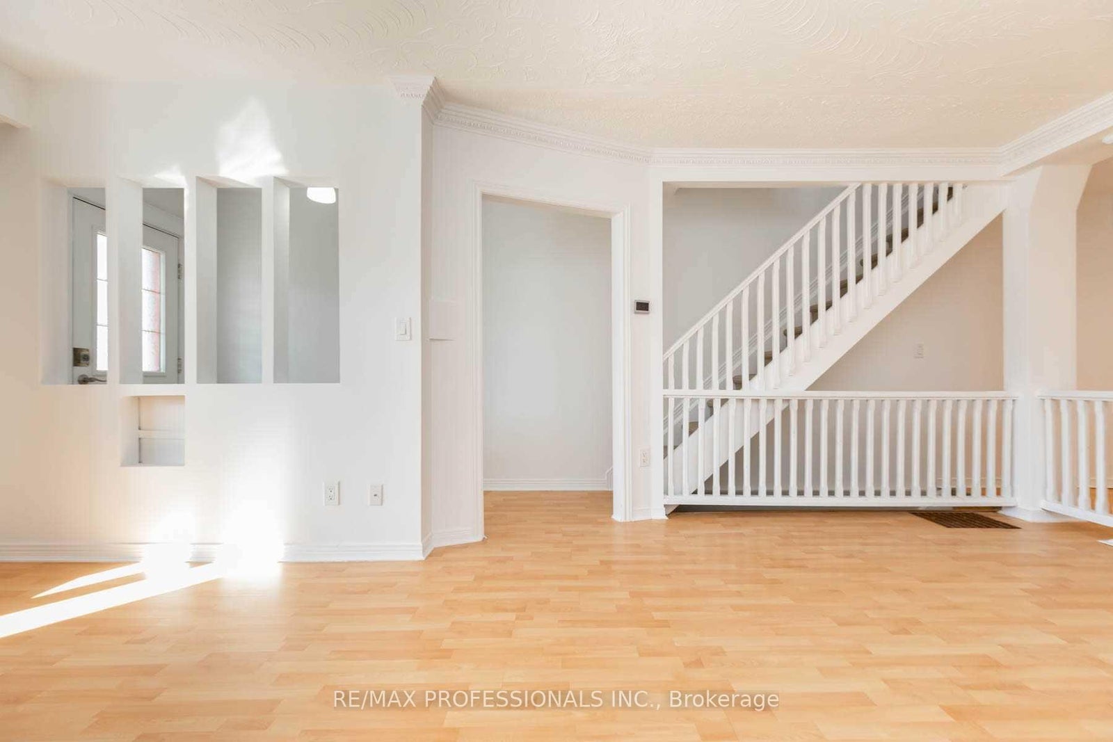 A charming three story red brick home tucked away in the heart of a family friendly neighbourhood. This four bedroom, two bath home warmly welcomes you into an open concept living and dining space with a large bay window overlooking a quiet street. The main floor also features large eat-in kitchen filled with light from a second bay window and skylight, with upgraded stainless steel appliances and plenty of cupboard space. The second story has three well appointed bedrooms and a four piece bathroom. Each bedroom has dedicated closet space and large windows. A carpeted third floor loft is the perfect fourth bedroom, office space or recreation area. The basement has high ceilings ,plenty of storage space, an additional bedroom and four piece bathroom. Large double car garage with separate power source and soaring ceilings offers ample parking, additional storage, and workshop. Conveniently located with a short walk to shops, restaurants, parks and schools. Easy access to transits, highways and airport. It will be a 10 minute walk to new Mt. Dennis LRT station.