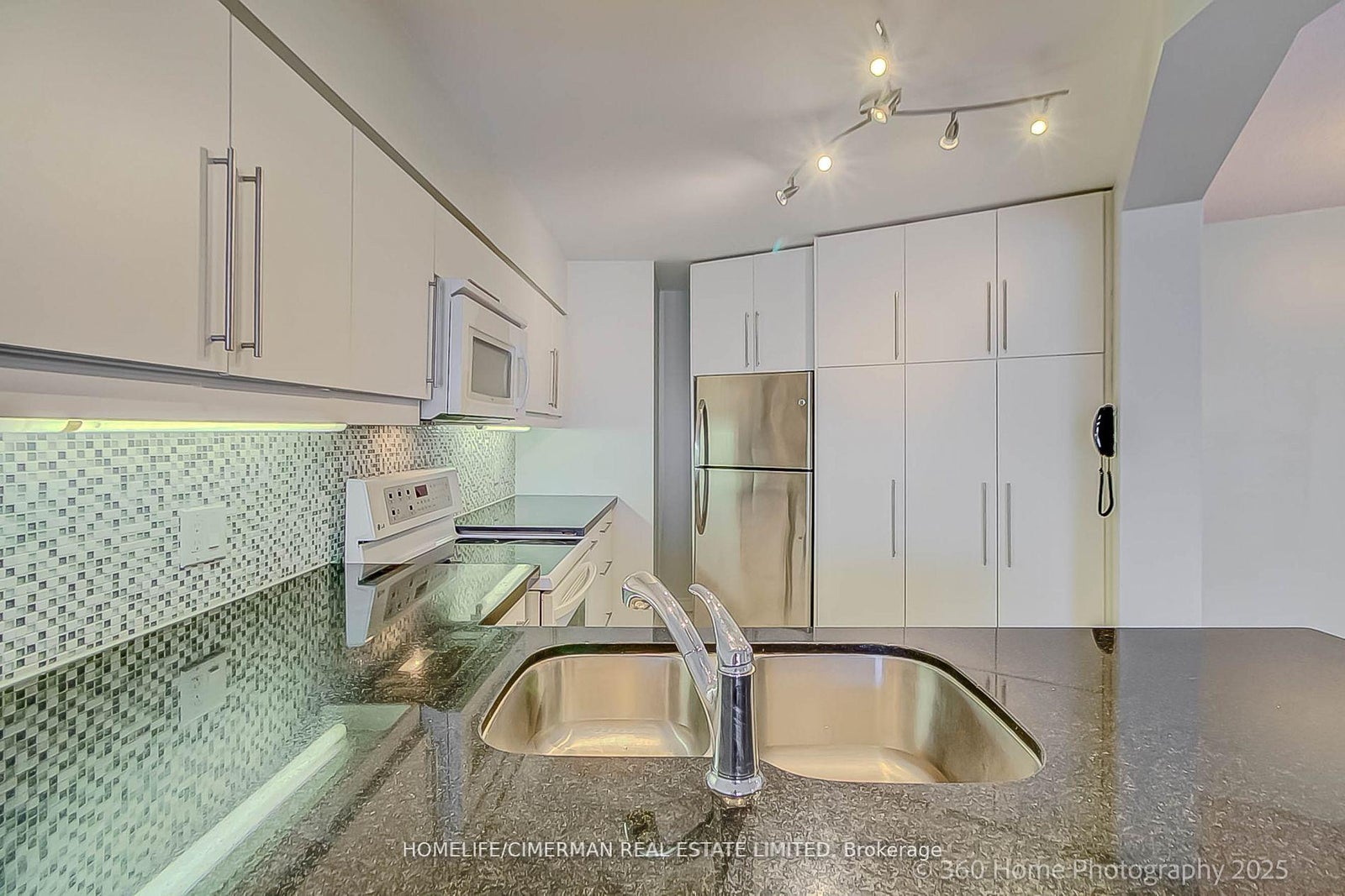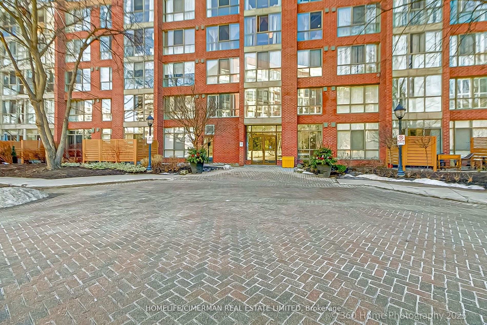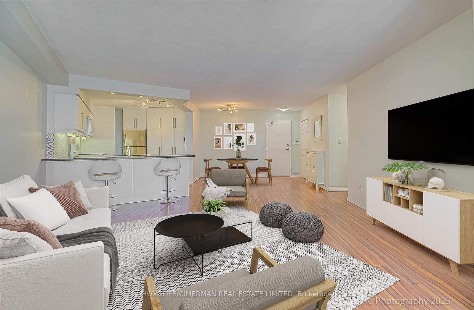 Don't miss the hottest deal going at South Kingsway Village 1! Enjoy your all-inclusive maintenance fees, including high-speed internet. Make 20 Southport, #413 your "port of call". That's right. The search stops here! Conveniently situated off scenic South Kingsway, this unique, gated living arrangement delivers BIG on space, location and bang for buck! The rare, oversized ~950 Sq.Ft., 1bedroom+den, 2 bath charmer is move-in ready, airy and flooded by natural light. They just don't make them like they used to! The unit boasts a modern open concept layout, combining minimalist and traditional charm - giving it a truly timeless yet timely feel!. The kitchen features a quartz countertop, ample storage, pantry and peninsula that doubles as a breakfast bar, with sightlines extending to the CN tower! The versatile den can easily serve as a hybrid, work from home office, second bedroom or sitting and sipping lounge. The primary bedroom is highlighted by a 4-piece en-suite , walk-in closet with storage galore and a large floor to ceiling window providing a stunning view of the T.O. skyline! Enjoy TTC at your door step, backing onto the Queen streetcar, with direct access to the downtown core! A true choice and lifestyle destination, you're only minutes to Bloor W, Roncesvalles, the Lakeshore, Sunnyside, Martin Goodman trail, High Park, the Humber River and top-rated schools. Did someone say Cheese Boutique? Yes. Just around the corner! This is not your average cookie cutter, tiny "box" in the sky. It's oozing with rarities and all you need! Quick...your destination of destiny is calling! **All inclusive maintenance fees cover your full array of expenses, including heat, AC, hydro, visitor parking and latest and greatest internet service with full cable package and land line phone as an added perk!** Why pay more?!