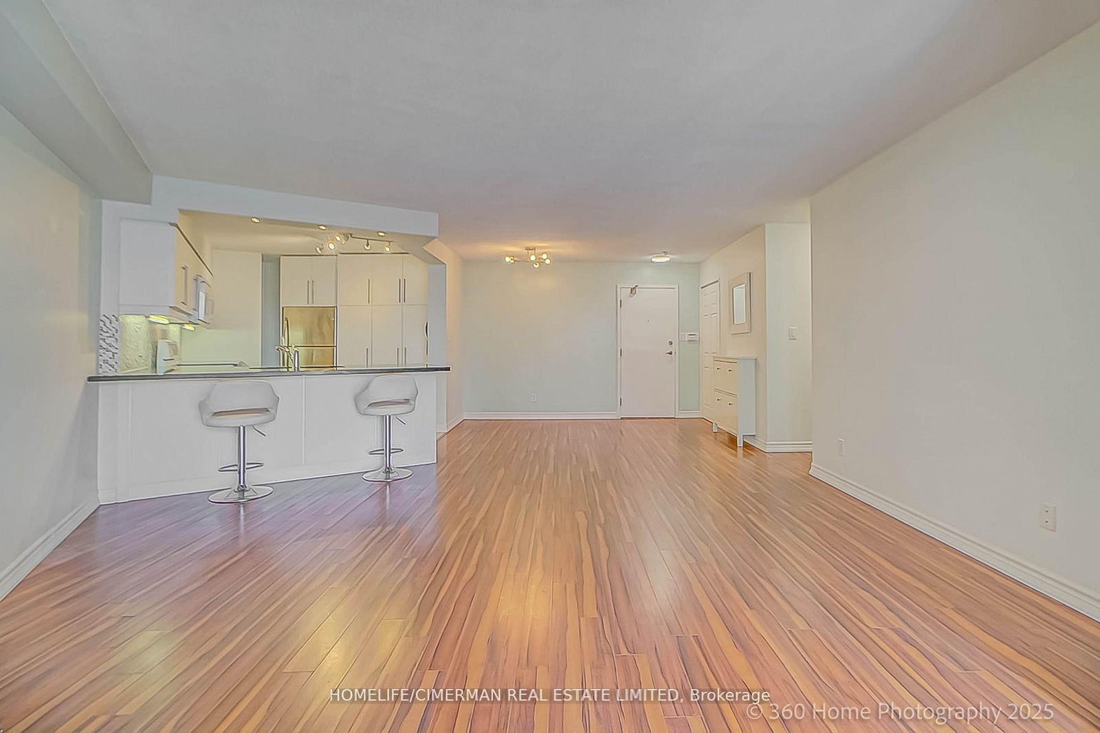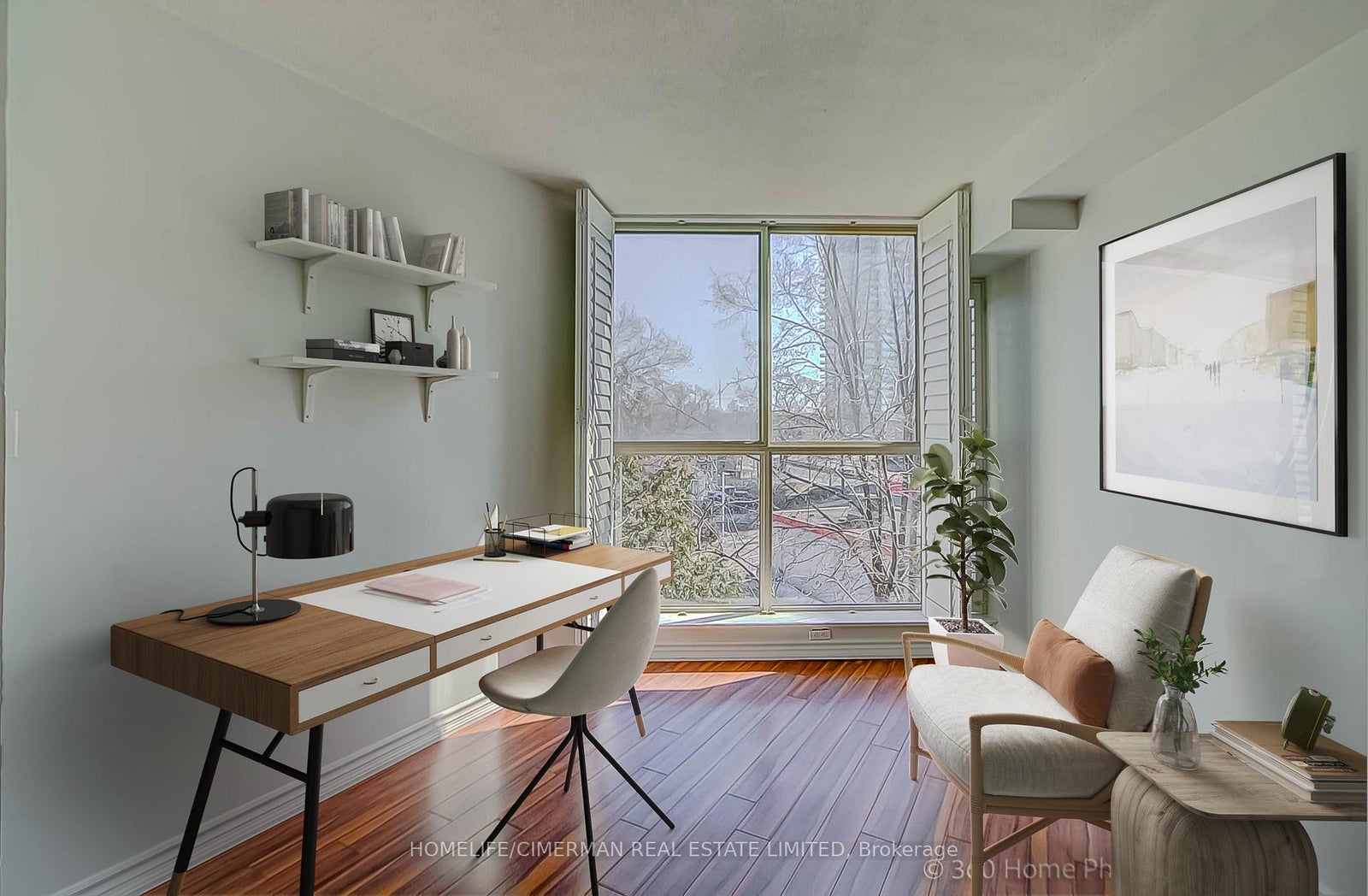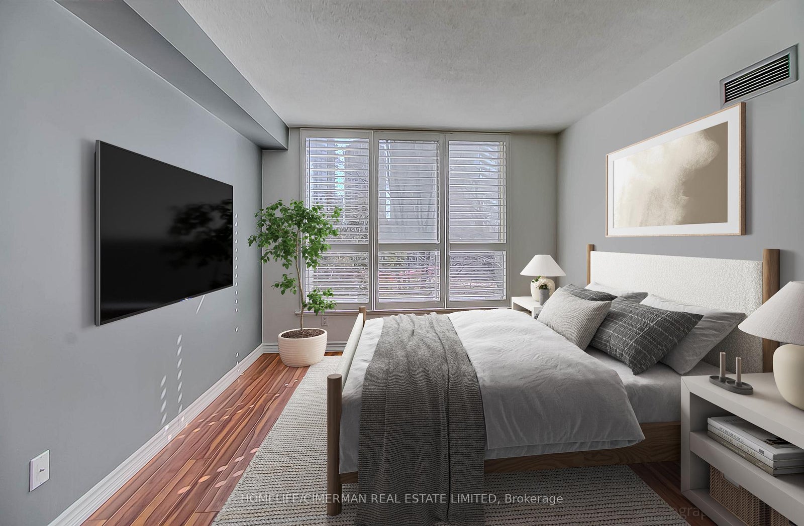 Don't miss the hottest deal going at South Kingsway Village 1! Enjoy your all-inclusive maintenance fees, including high-speed internet. Make 20 Southport, #413 your "port of call". That's right. The search stops here! Conveniently situated off scenic South Kingsway, this unique, gated living arrangement delivers BIG on space, location and bang for buck! The rare, oversized ~950 Sq.Ft., 1bedroom+den, 2 bath charmer is move-in ready, airy and flooded by natural light. They just don't make them like they used to! The unit boasts a modern open concept layout, combining minimalist and traditional charm - giving it a truly timeless yet timely feel!. The kitchen features a quartz countertop, ample storage, pantry and peninsula that doubles as a breakfast bar, with sightlines extending to the CN tower! The versatile den can easily serve as a hybrid, work from home office, second bedroom or sitting and sipping lounge. The primary bedroom is highlighted by a 4-piece en-suite , walk-in closet with storage galore and a large floor to ceiling window providing a stunning view of the T.O. skyline! Enjoy TTC at your door step, backing onto the Queen streetcar, with direct access to the downtown core! A true choice and lifestyle destination, you're only minutes to Bloor W, Roncesvalles, the Lakeshore, Sunnyside, Martin Goodman trail, High Park, the Humber River and top-rated schools. Did someone say Cheese Boutique? Yes. Just around the corner! This is not your average cookie cutter, tiny "box" in the sky. It's oozing with rarities and all you need! Quick...your destination of destiny is calling! **All inclusive maintenance fees cover your full array of expenses, including heat, AC, hydro, visitor parking and latest and greatest internet service with full cable package and land line phone as an added perk!** Why pay more?!